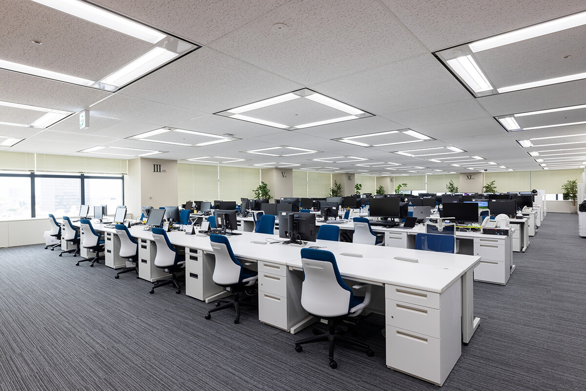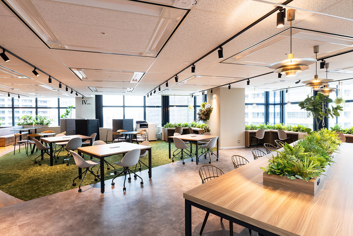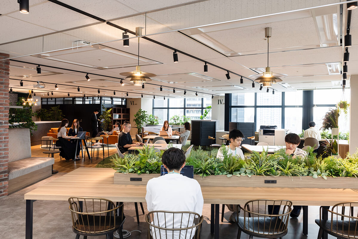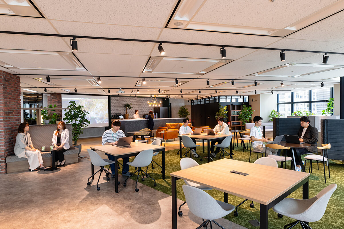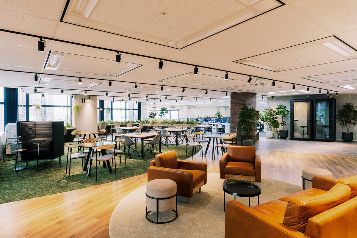 デスクワークに適した執務スペースに加え、開放感あふれるフリーアドレス席を導入しており、