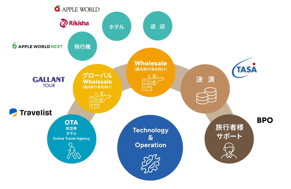 [事業内容]海外・国内ホテルの予約・手配、ホテルクーポン販売、海外・国内ホテル・旅行関連情報サービス、航空券の仕入、発券代行、精算事業、決済代行事業、旅行会社向けBPO事業
