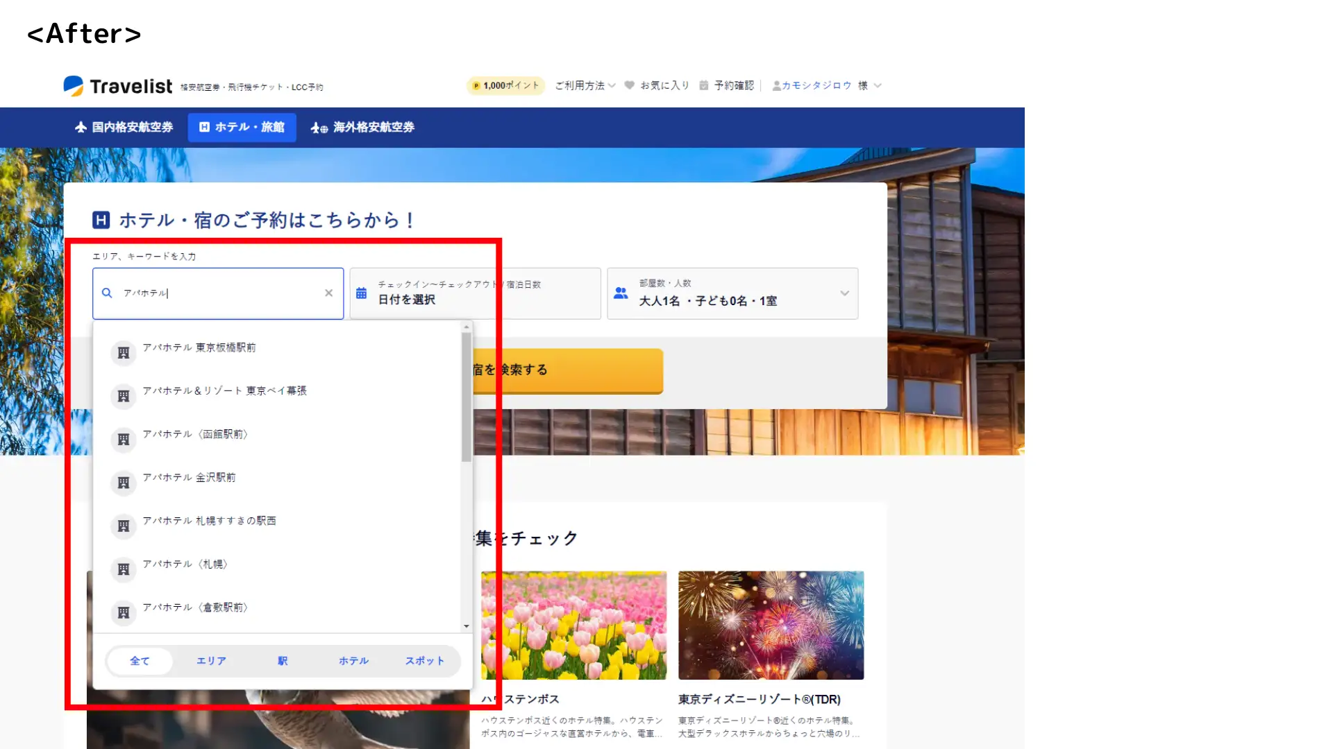 有名スポット/キーワード/プラン検索など、より柔軟な絞り込みオプションが登場!航空券に加えて約14,000件の国内ホテル・旅館をワンストップで比較・予約可能!理想の宿泊先探しをよりスムーズに